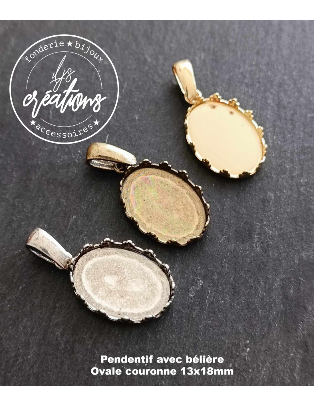 Base pour pendentif ovale (style couronne) 13x18mm - Finition au choix