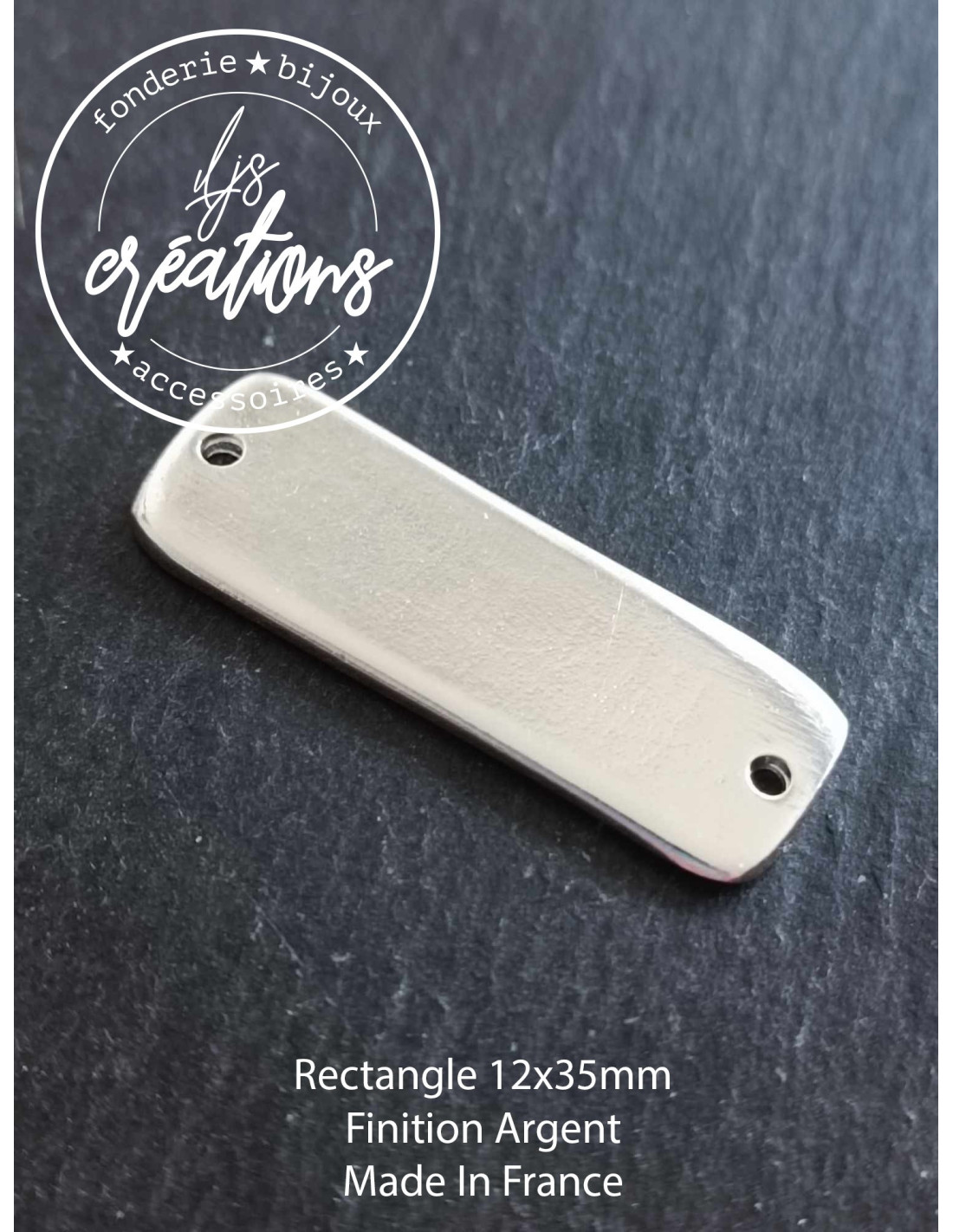 Médaille Rectangle 1ex35mm environ 2mm d'épaisseur - chaque médaille est différente. L'épaisseur des médailles varient d'une fabrication à une autre +/- 1mm.