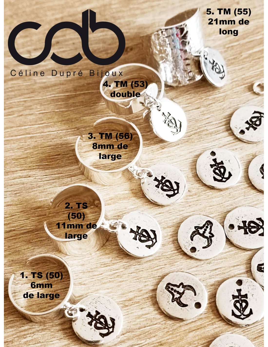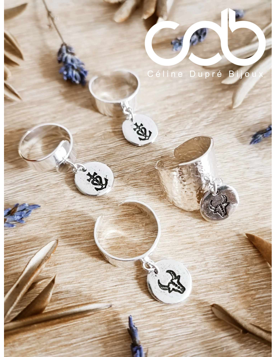 Bague avec pampille au choix : Croix de Camargue - Anneau au choix