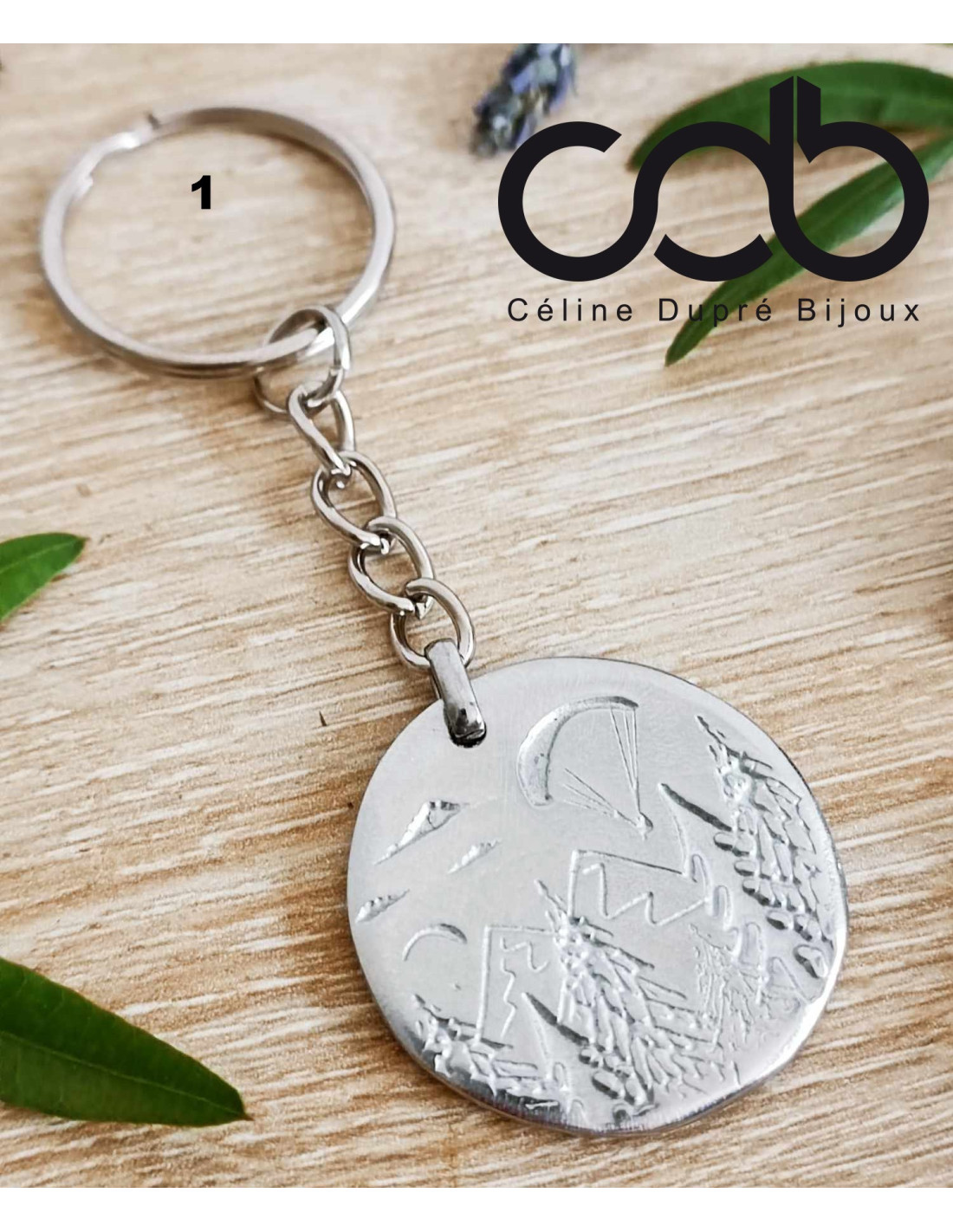 Porte clés Parapente + Forêt en étain - Modèle au choix
