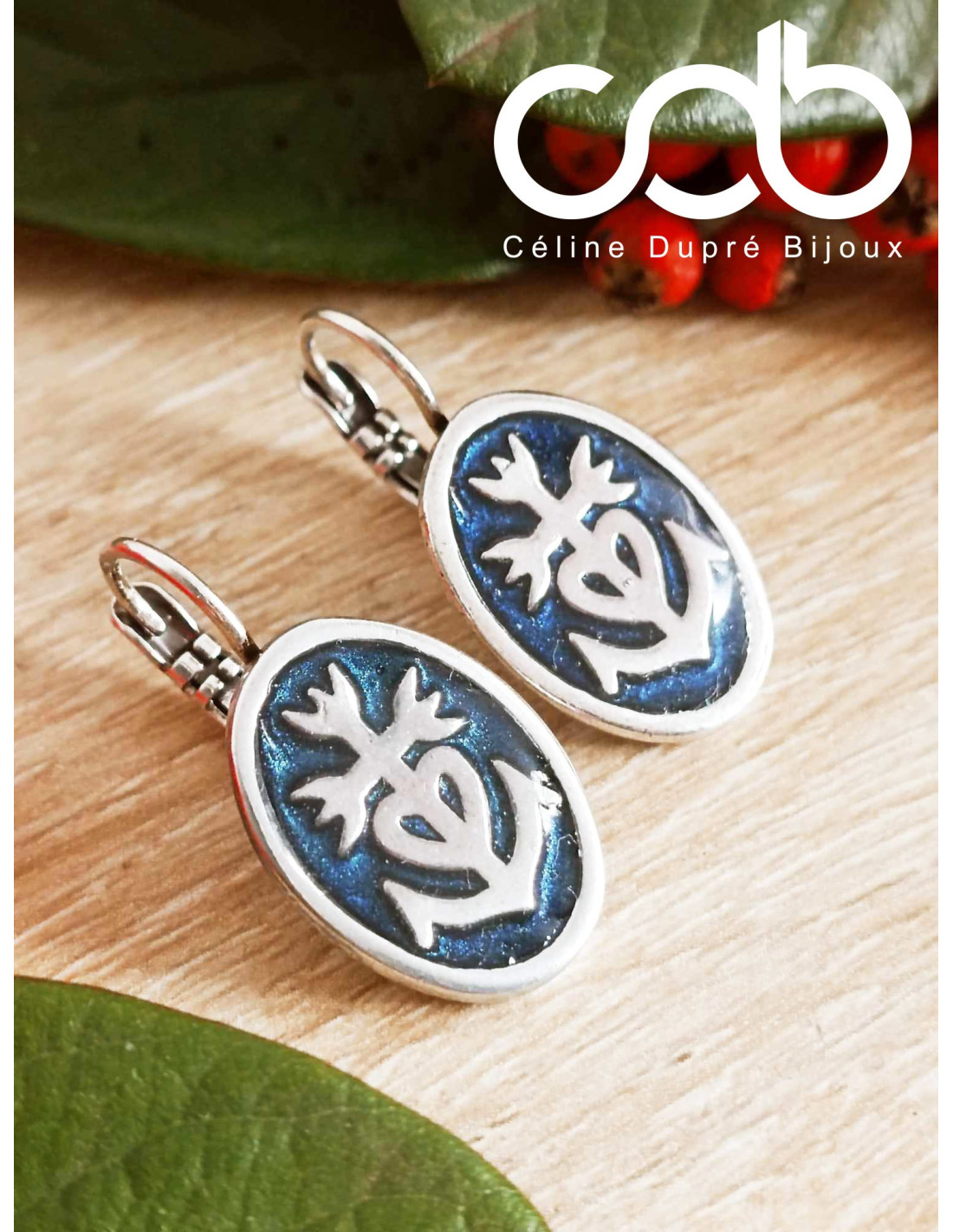 Boucles d'oreilles Croix de Camargue ovale avec couleur - mm - modèle au choix