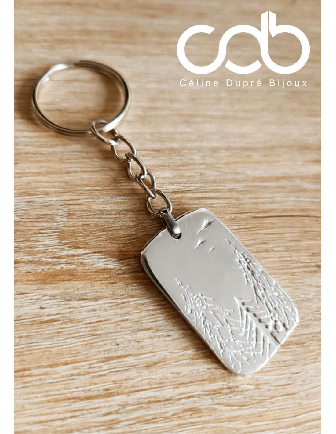 Porte-clés Forêt avec Médaille Rectangle 20×40 mm – Fabrication Artisanale