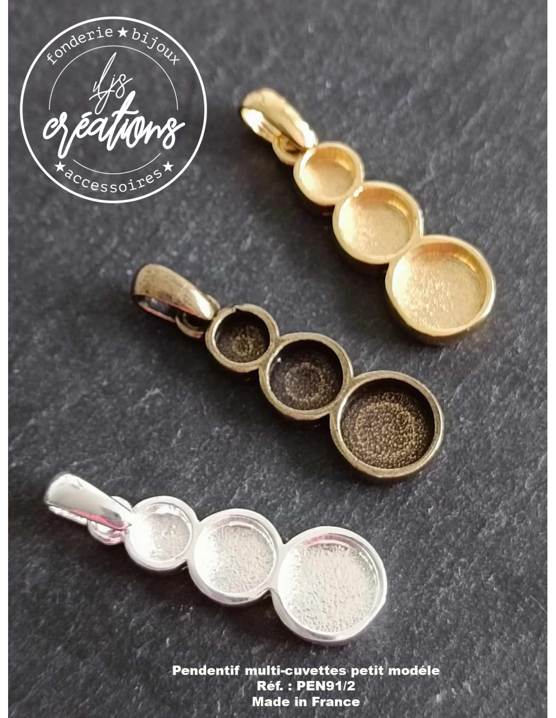 Base pour pendentif multi-cuvettes - petit modèle 11x27mm et finition au choix