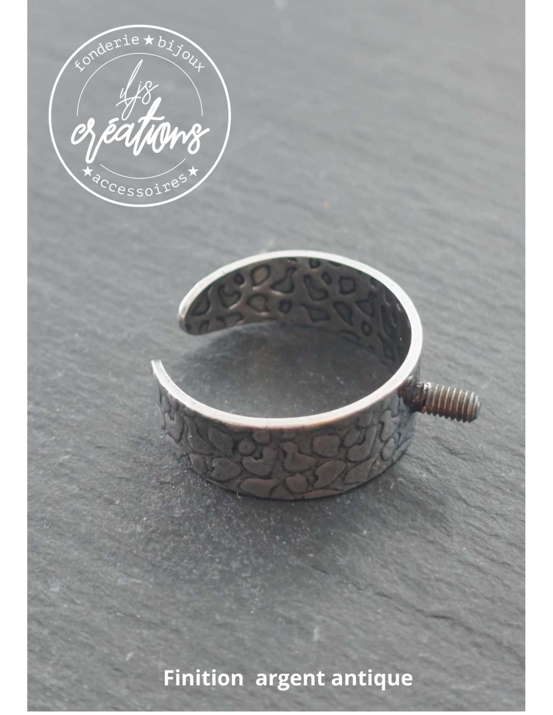 Anneau martelé style girafe 8mm de large TM réglable (57)