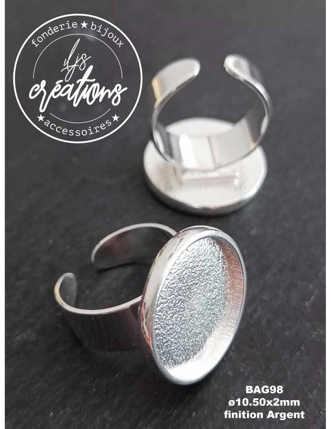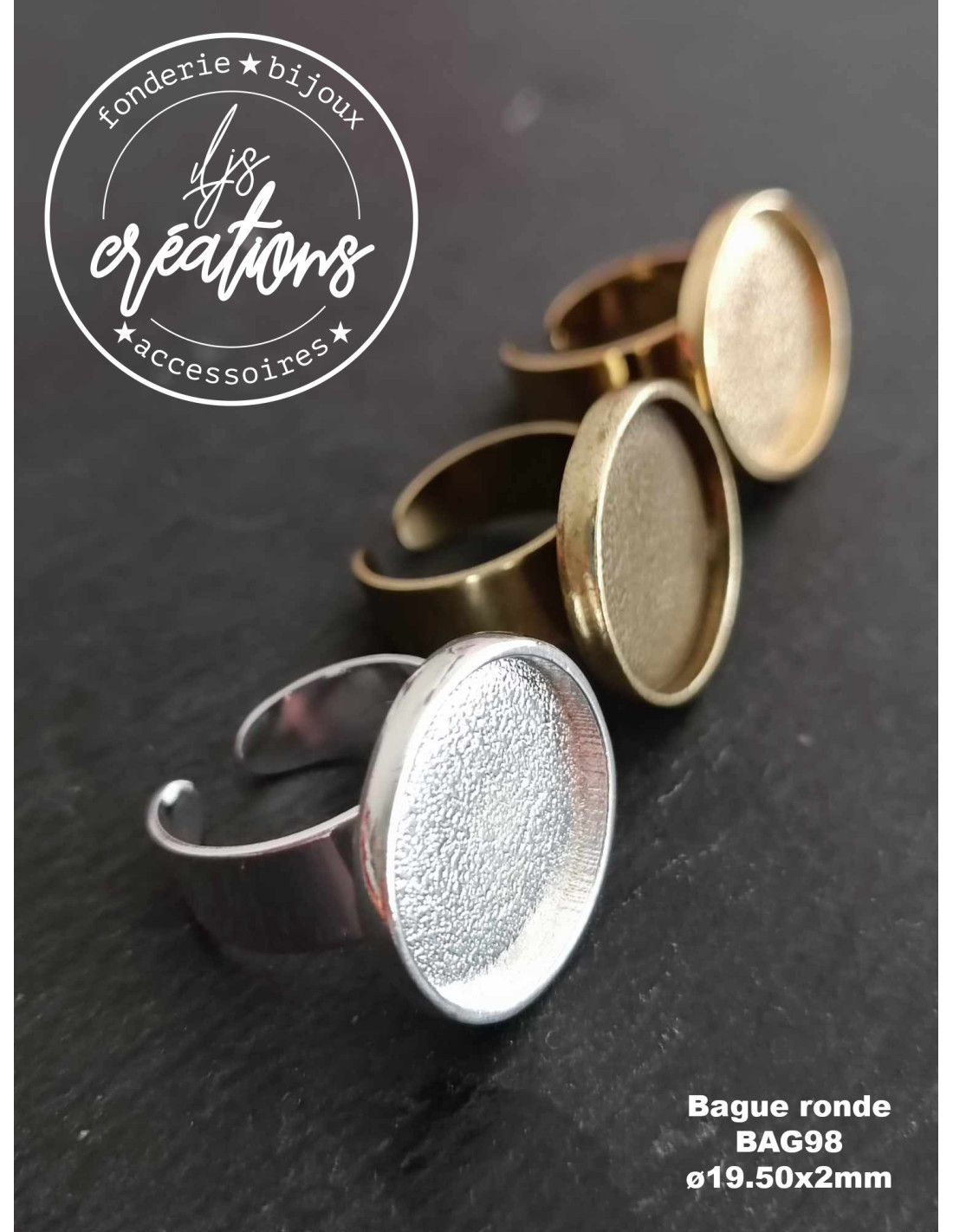 Bague ronde ø21mm avec cuvette ø19,5x2mm à utiliser en pendentif avec un anneau ou en boucles d'oreilles.
