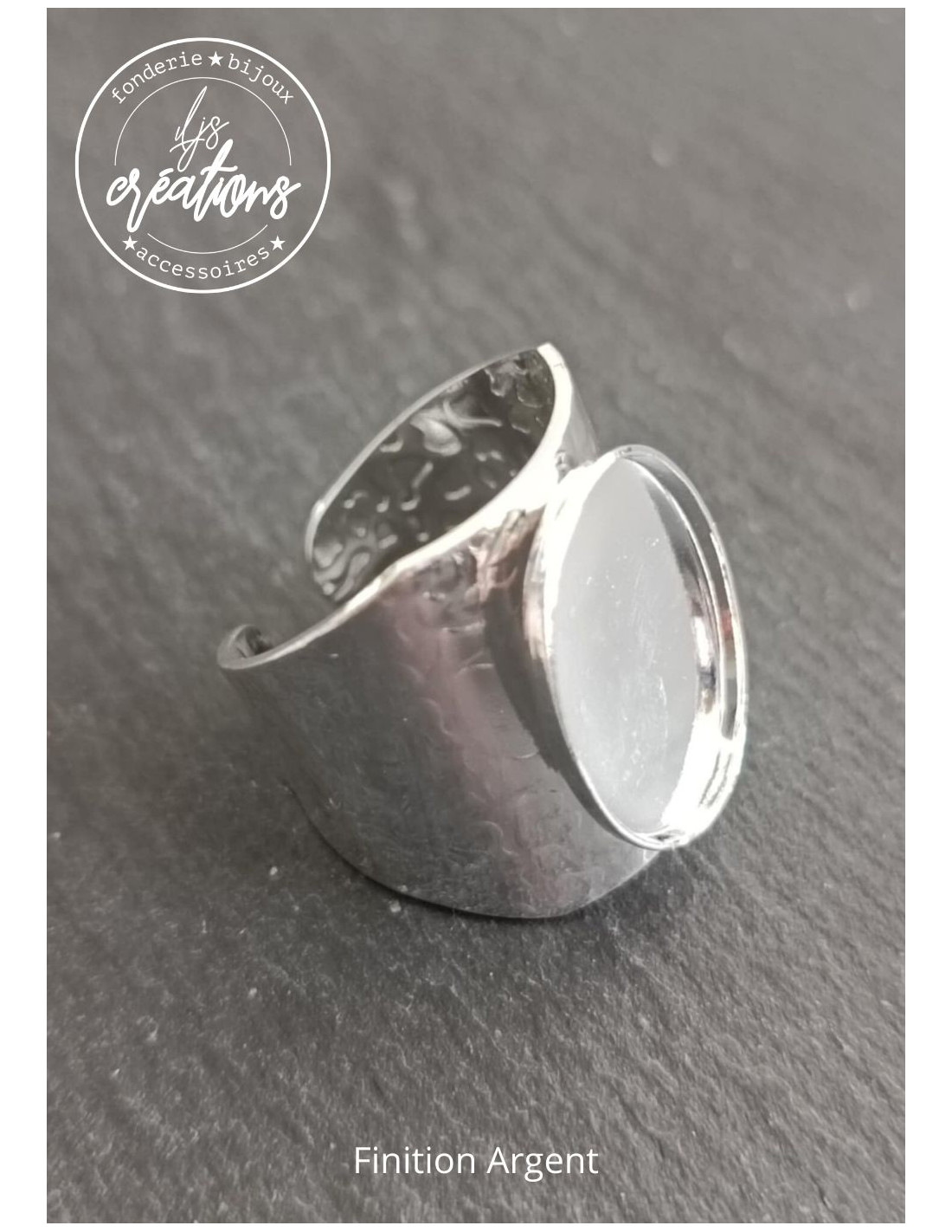 Base pour Bague chevalière avec cuvette ovale 13x18x1.3mm - Anneau martelé style Girafe