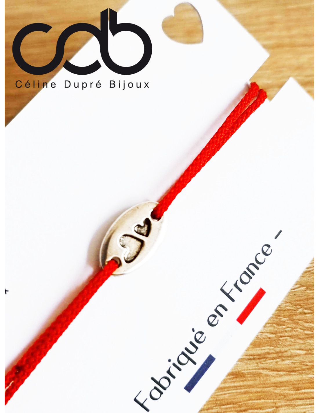 Bracelet réglable avec médaille "2 petits coeurs" 8x15mm