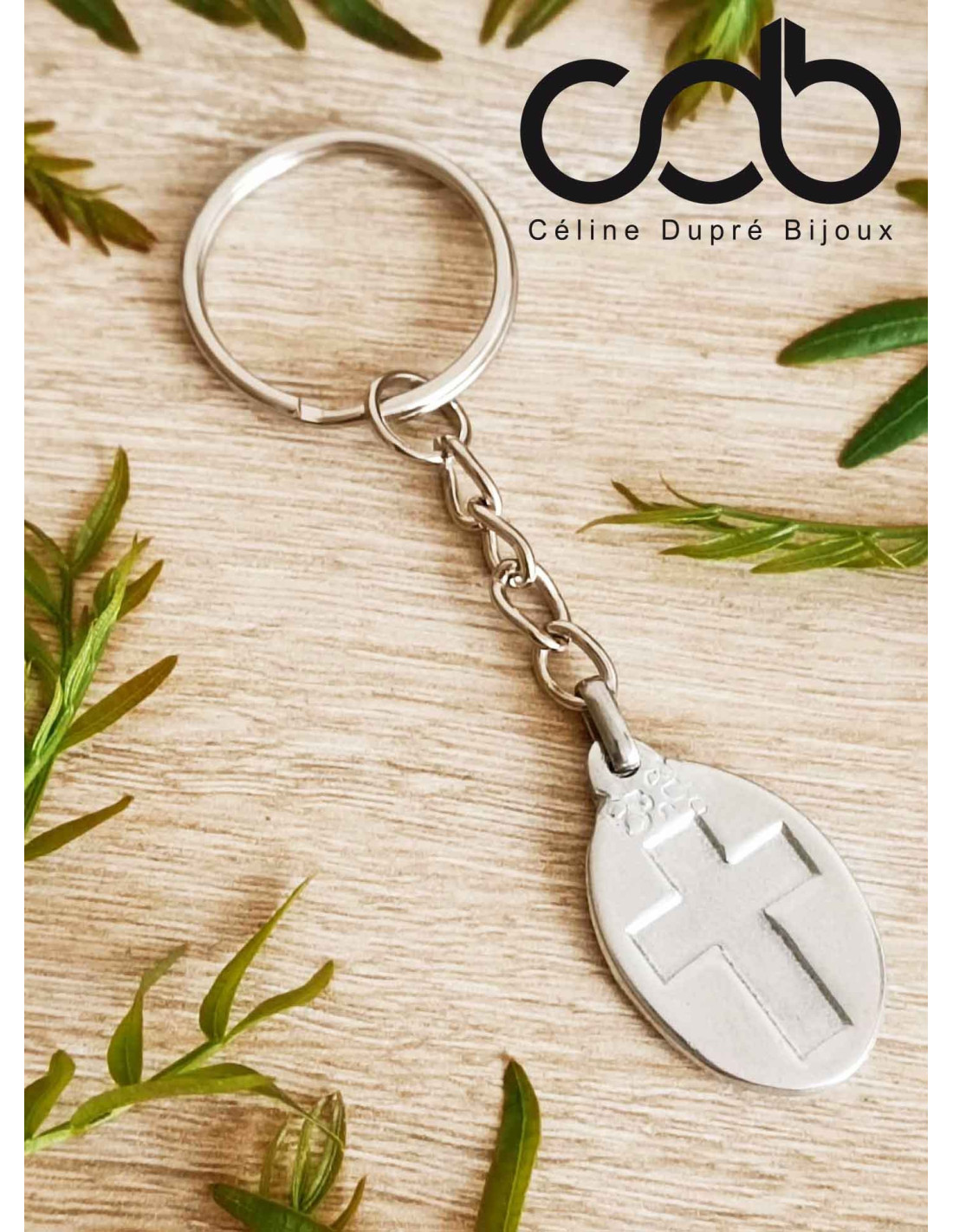 Porte clés en étain brut, idéal pour les communions, noces...