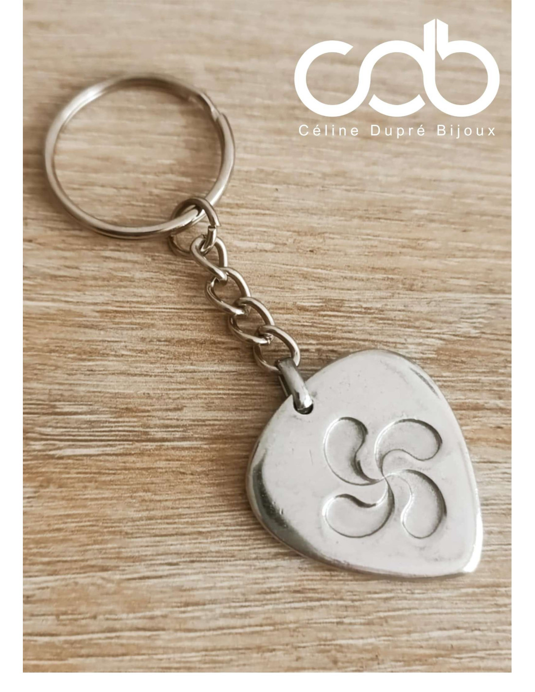 ✨ Porte-clés Croix Basque (Lauburu) en étain brut – Fabrication artisanale ✨