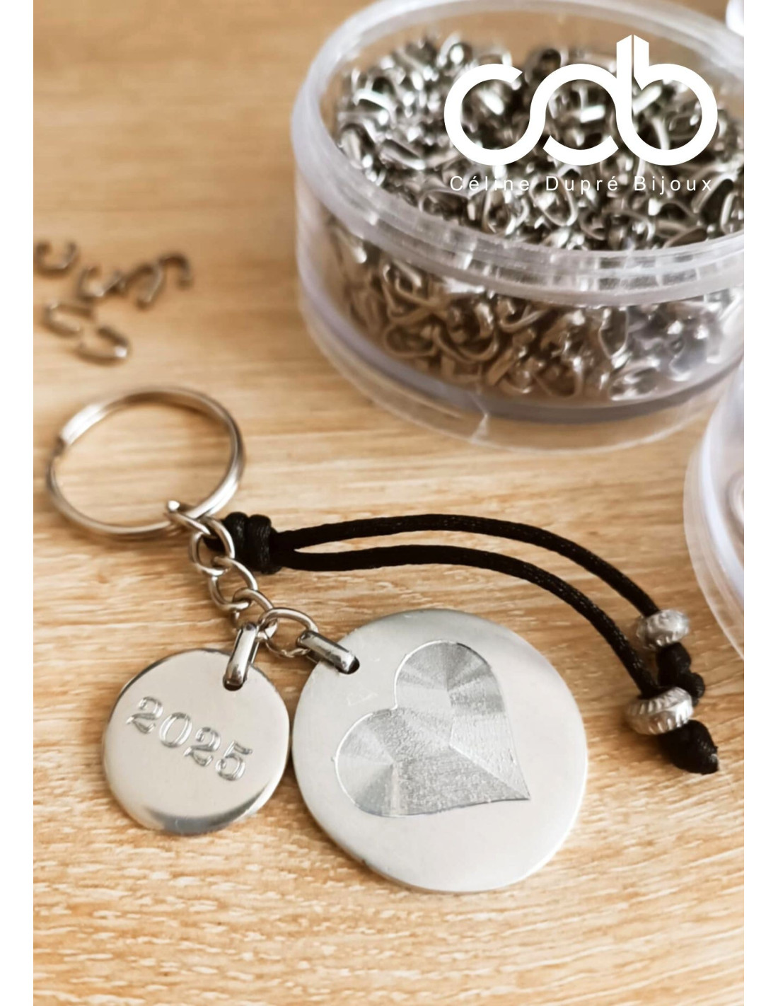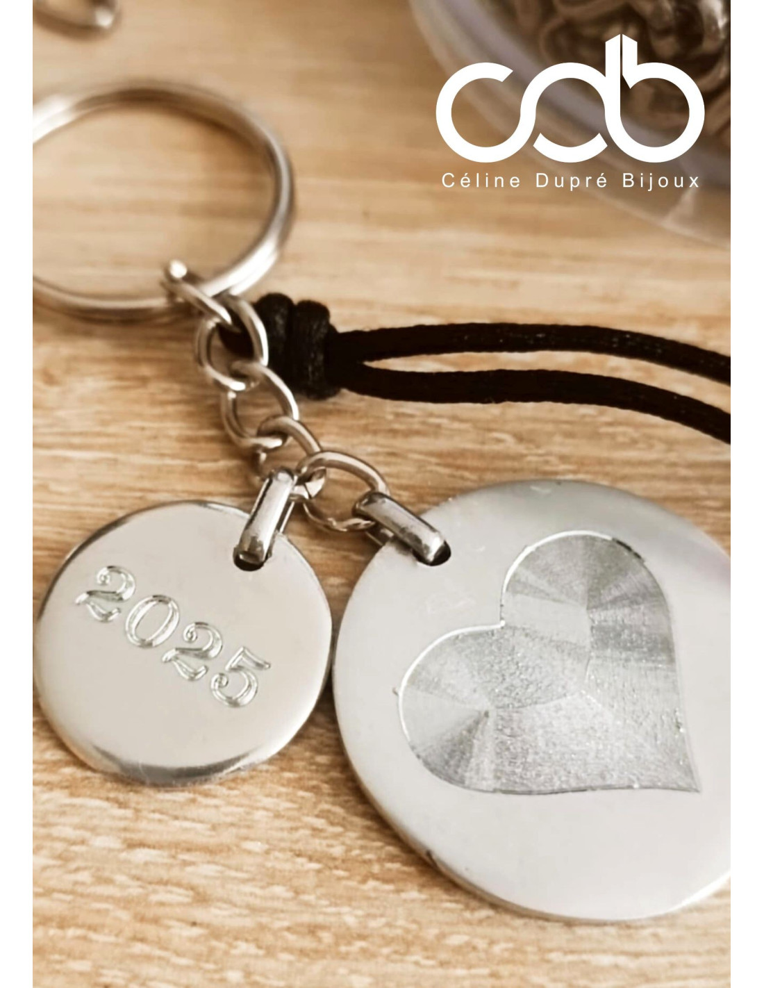Porte clés en étain - 2 médailles 18/30mm - gravure au choix - cordon au choix
