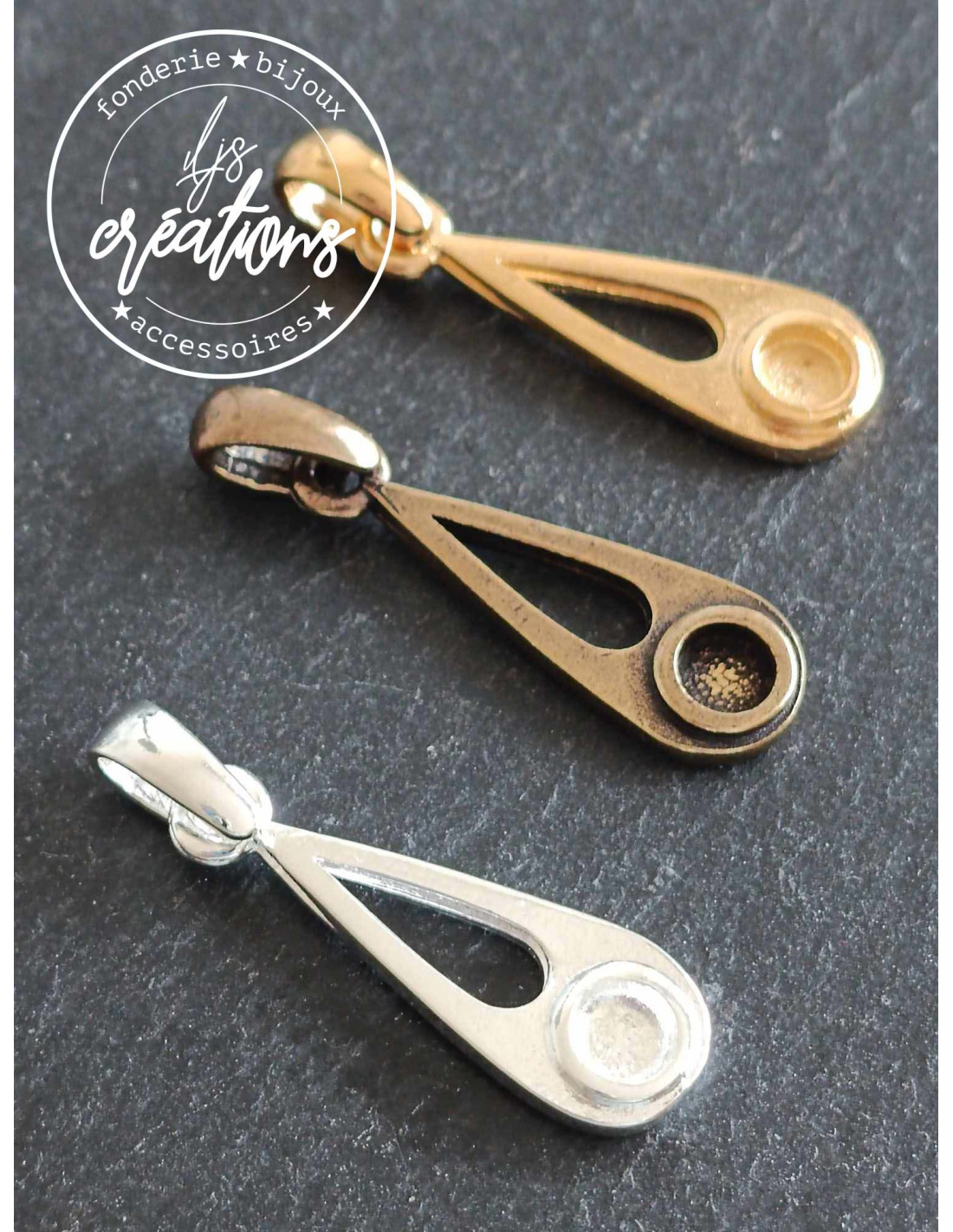 Base pour pendentif petite goutte 10x25mm cuvette ø5mm avec bélière - finition au choix