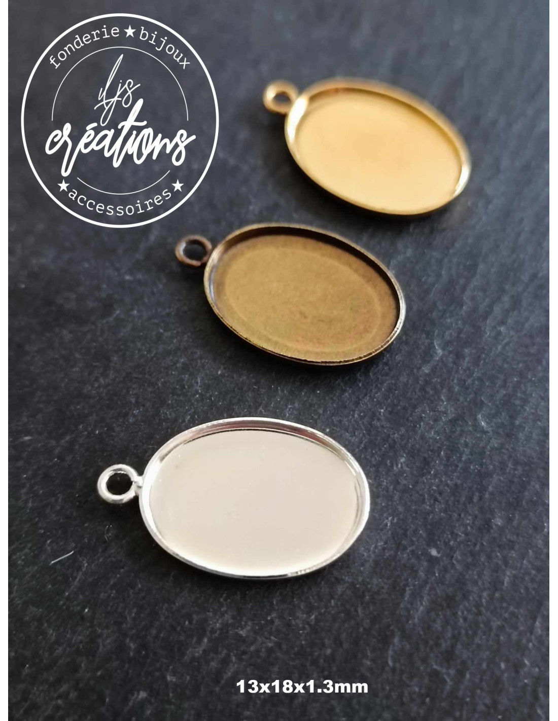 Base pour Pendentif Ovale 13x18x1.3 mm – Sans belière