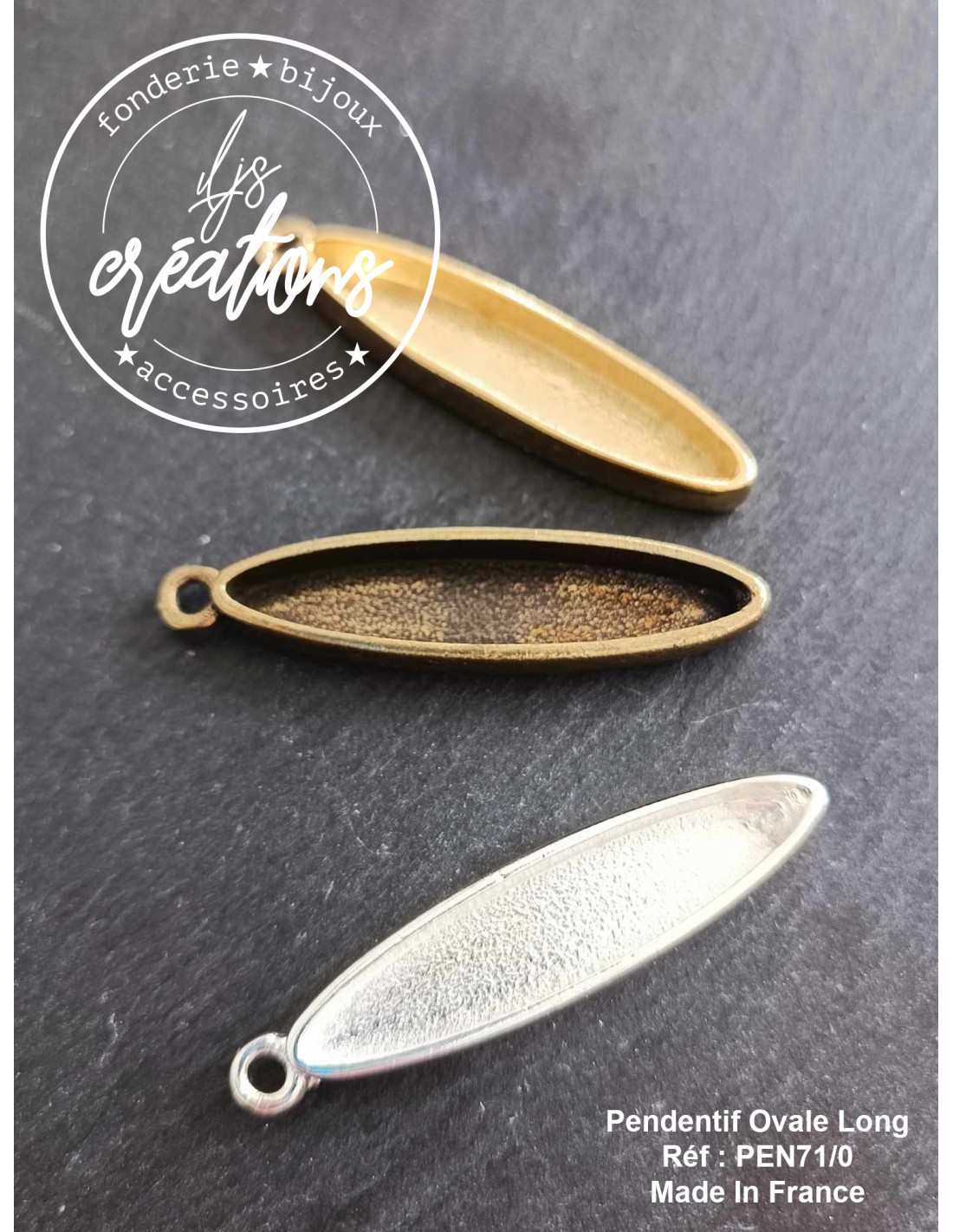 Base pour pendentif Ovale Long 8x37x4mm sans bélière - Finition au choix