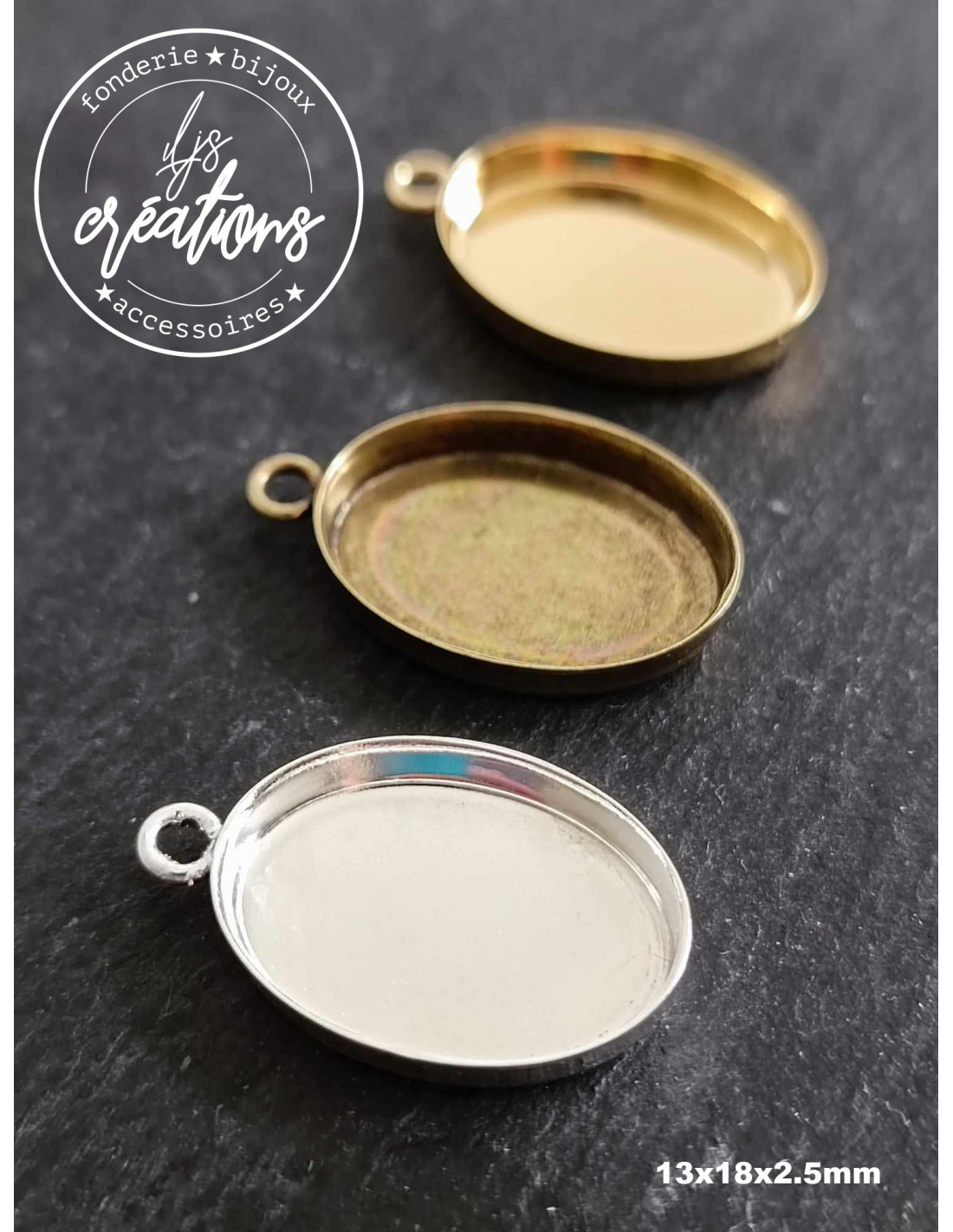 Base pour Pendentif Ovale 13x18x2.5 mm – Sans Bélière