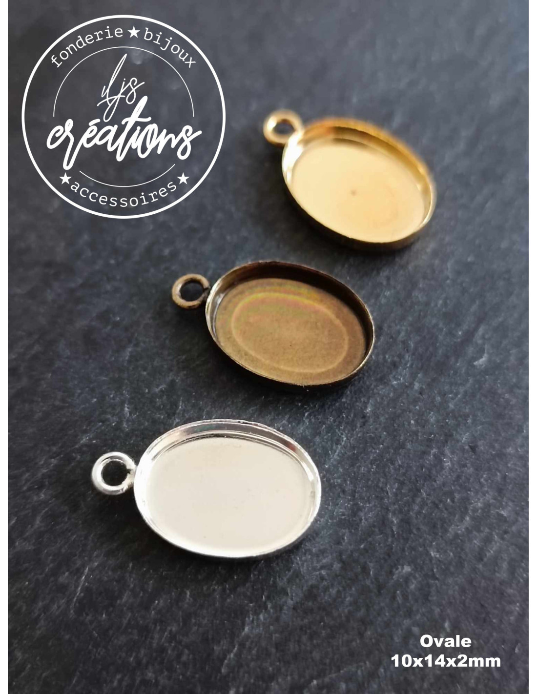 Base pour pendentif ovale avec cuvette 10x14mm - finition au choix - Sans Bélière