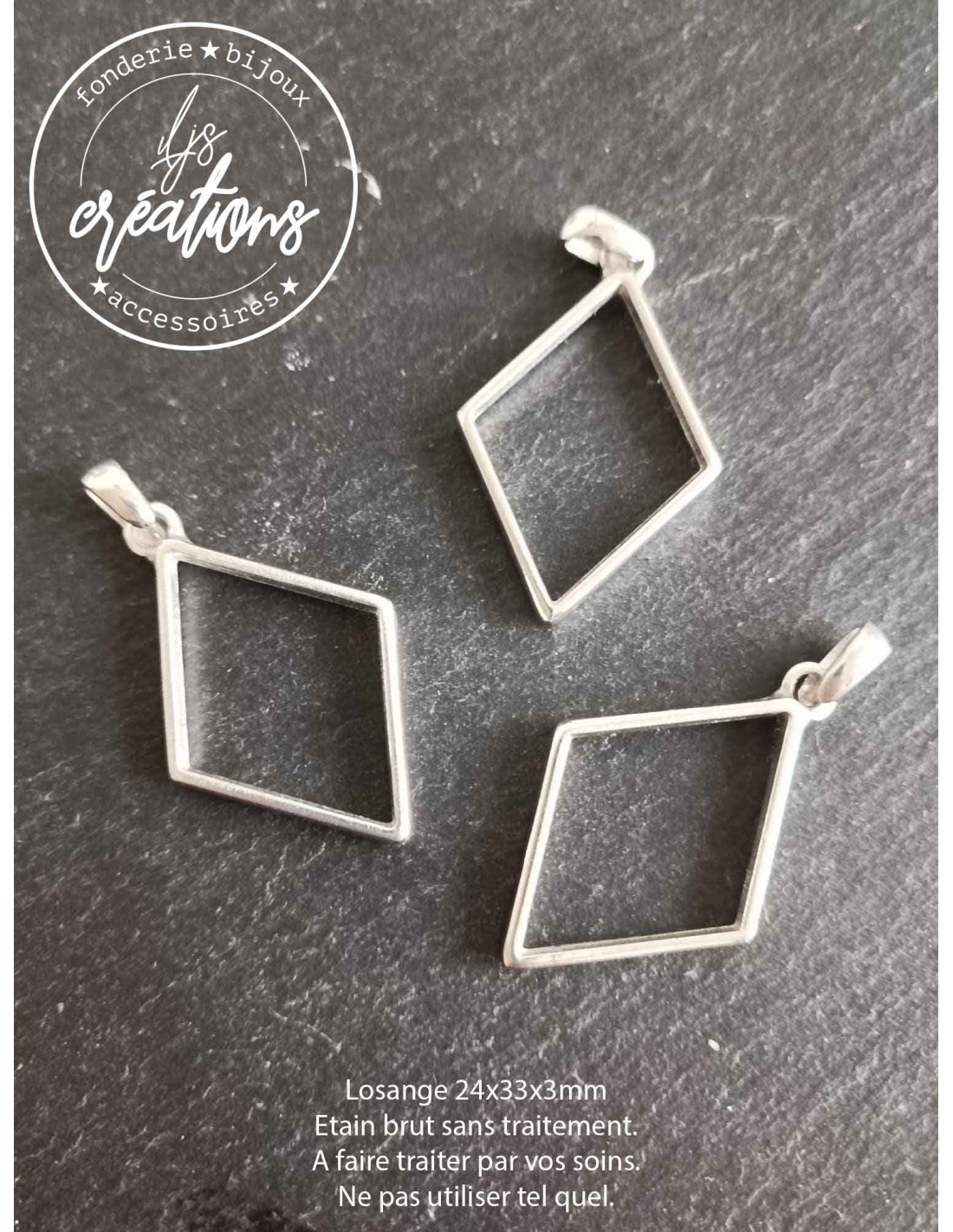 Base pour pendentif cadre avec bélière - losange 25x38x3mm - finition au choix