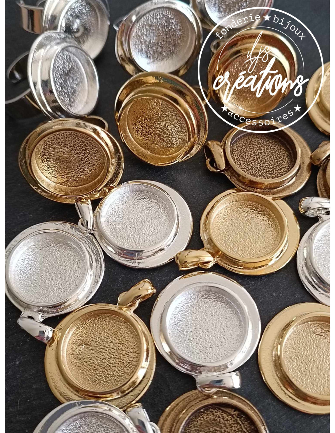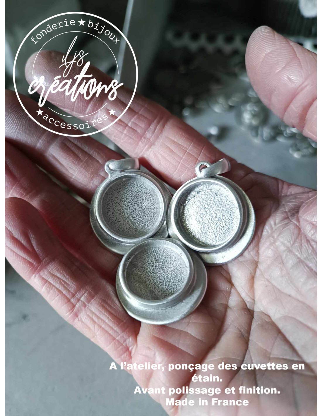 Pendentif rond 26 mm avec cuvette 18 mm sans bélière – Support cabochon – Fabrication artisanale française