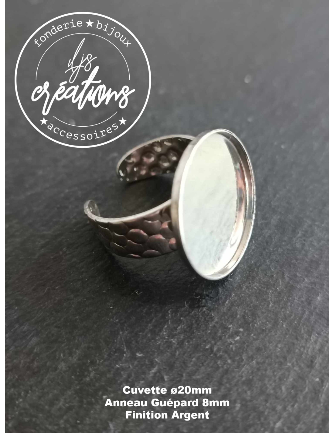 Base pour Bague ronde avec cuvette ø20x1.5mm anneau martelé style Guépard - Finition au choix