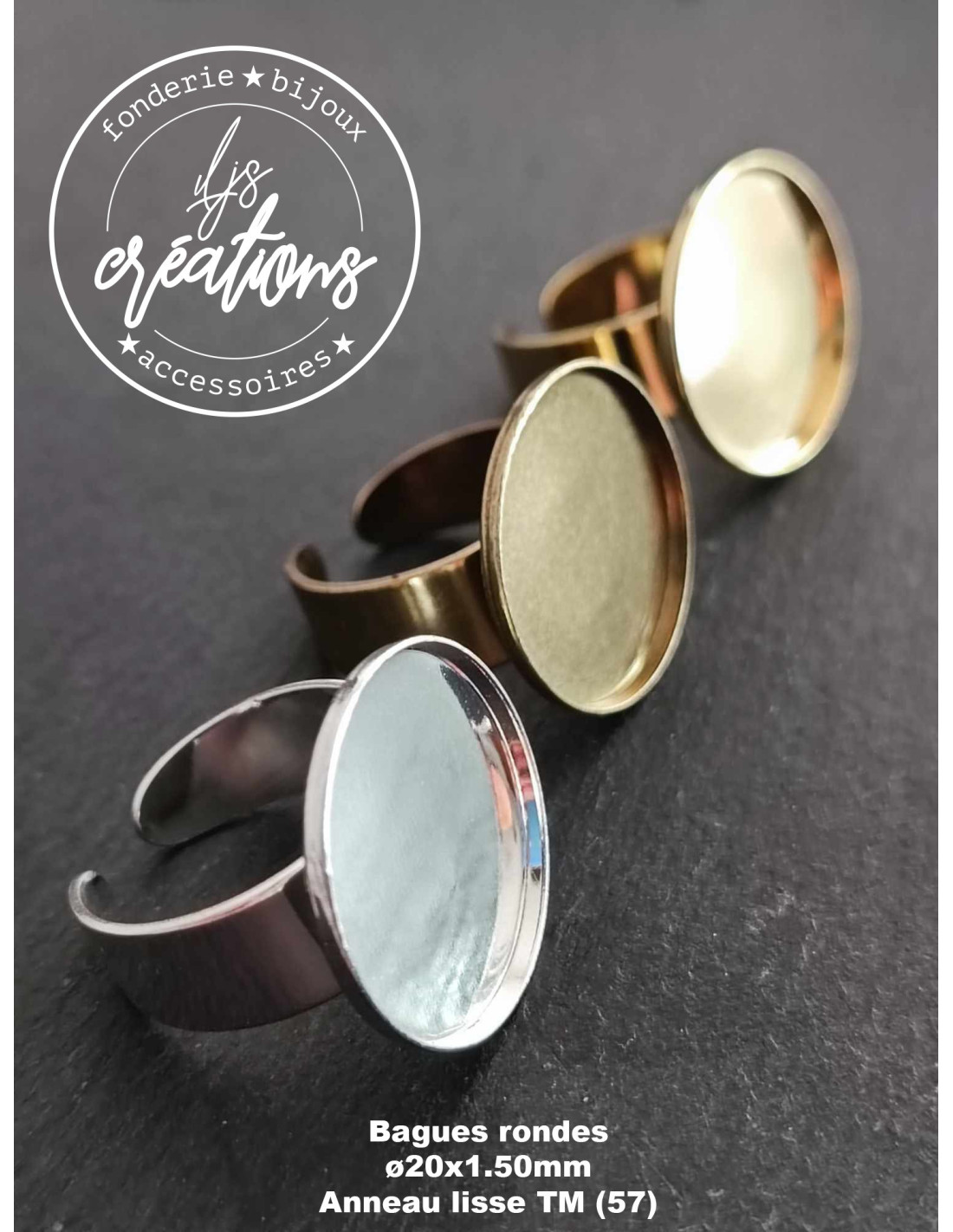 Base de bague avec cuvette ronde Ø20x1,5 mm – Support pour cabochon – Anneau réglable