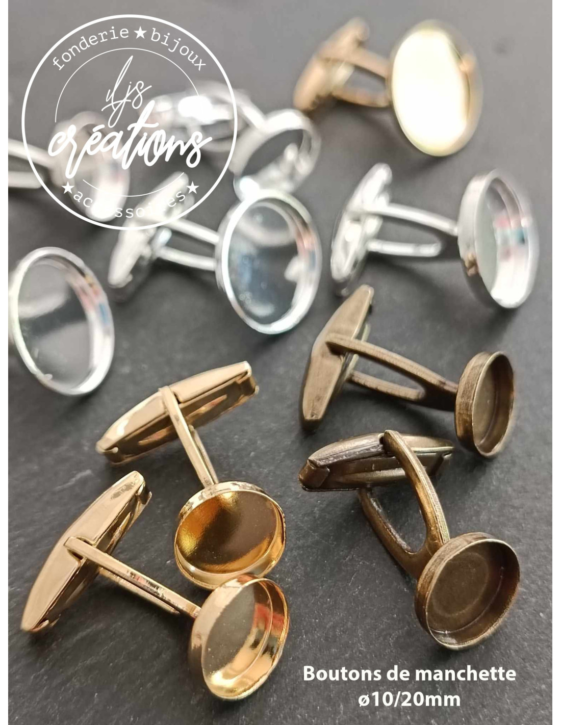 Base pour Boutons de manchette Ronds ø16x1.5mm - Finition au choix